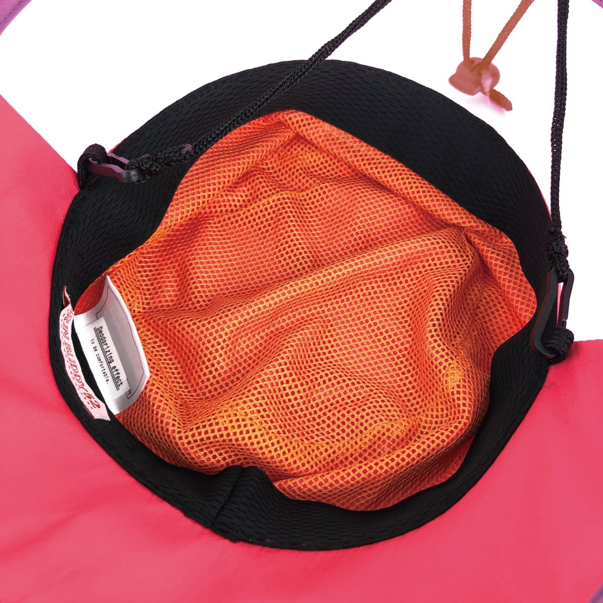 ボディの撥水加工生地とつばのPVCが水滴を弾いてくれるので傘がうまくさせないお子様や傘を持たずに遊びたいお子様にもおすすめ。