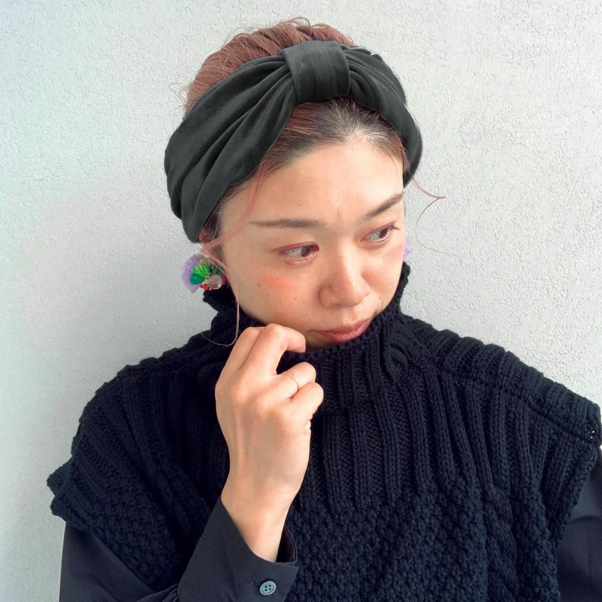伸縮性のある生地感で着け心地も気持ちいいターバン。