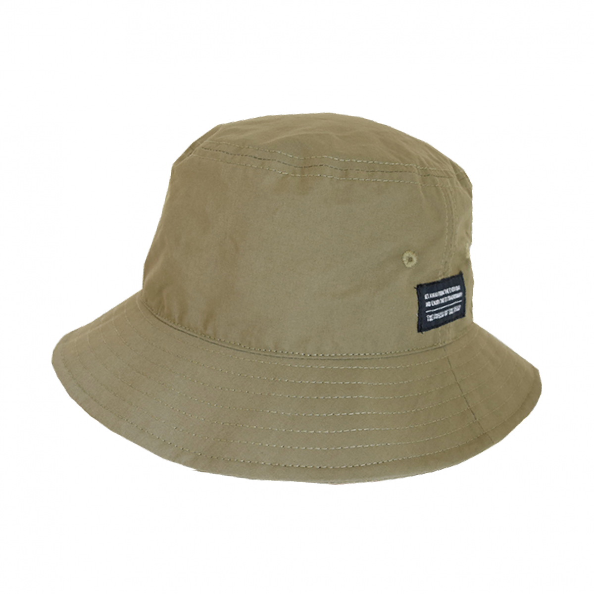 シンプルなデザインにサイドの生地タグが効いたハット。