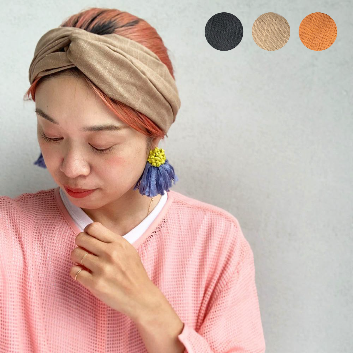 柔らかいリネン素材のヘアターバン。