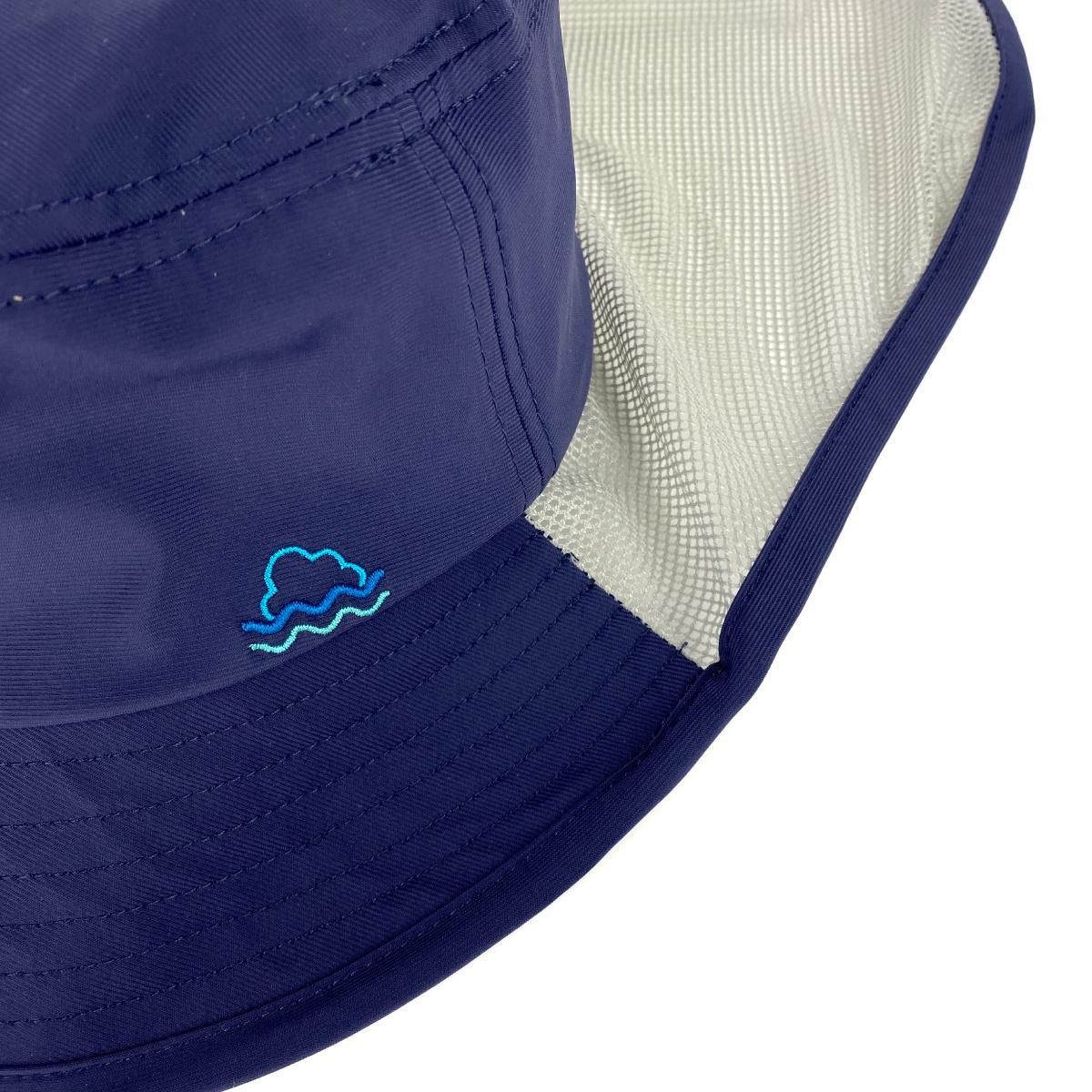 サイドの刺繍マークは水面に浮かぶ夏の大きな雲を思わせ、気分の上がるアイテムです。