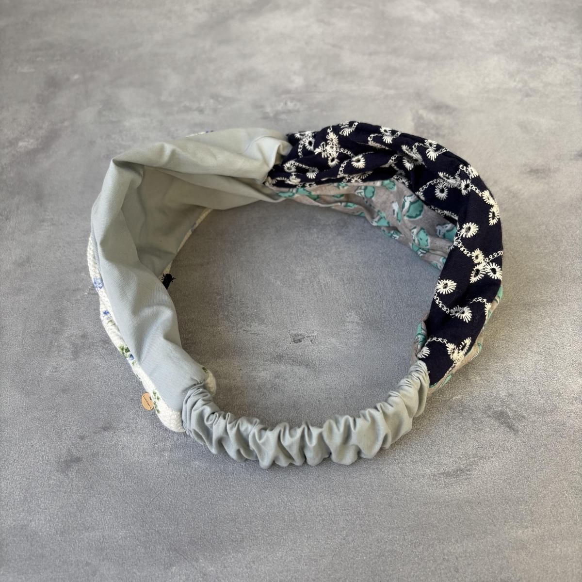 落ち着いたカラーに柄が入ってるのでコーディネートのワンポイントに取り入れやすいヘアターバンです。