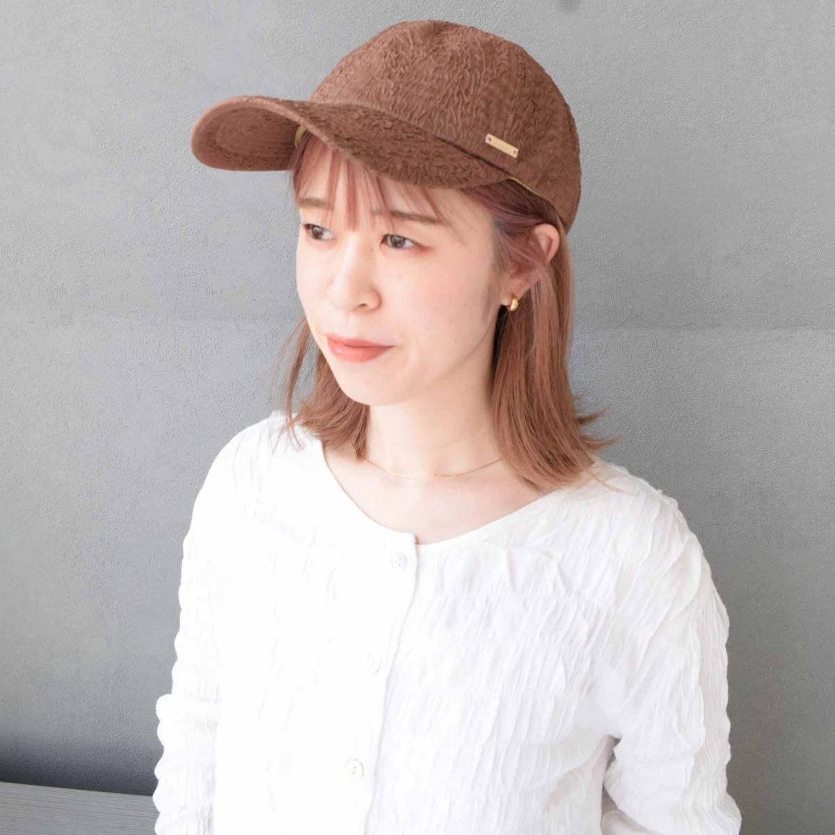 くしゃっとしたシアー生地が乗ったかわいいキャップ。