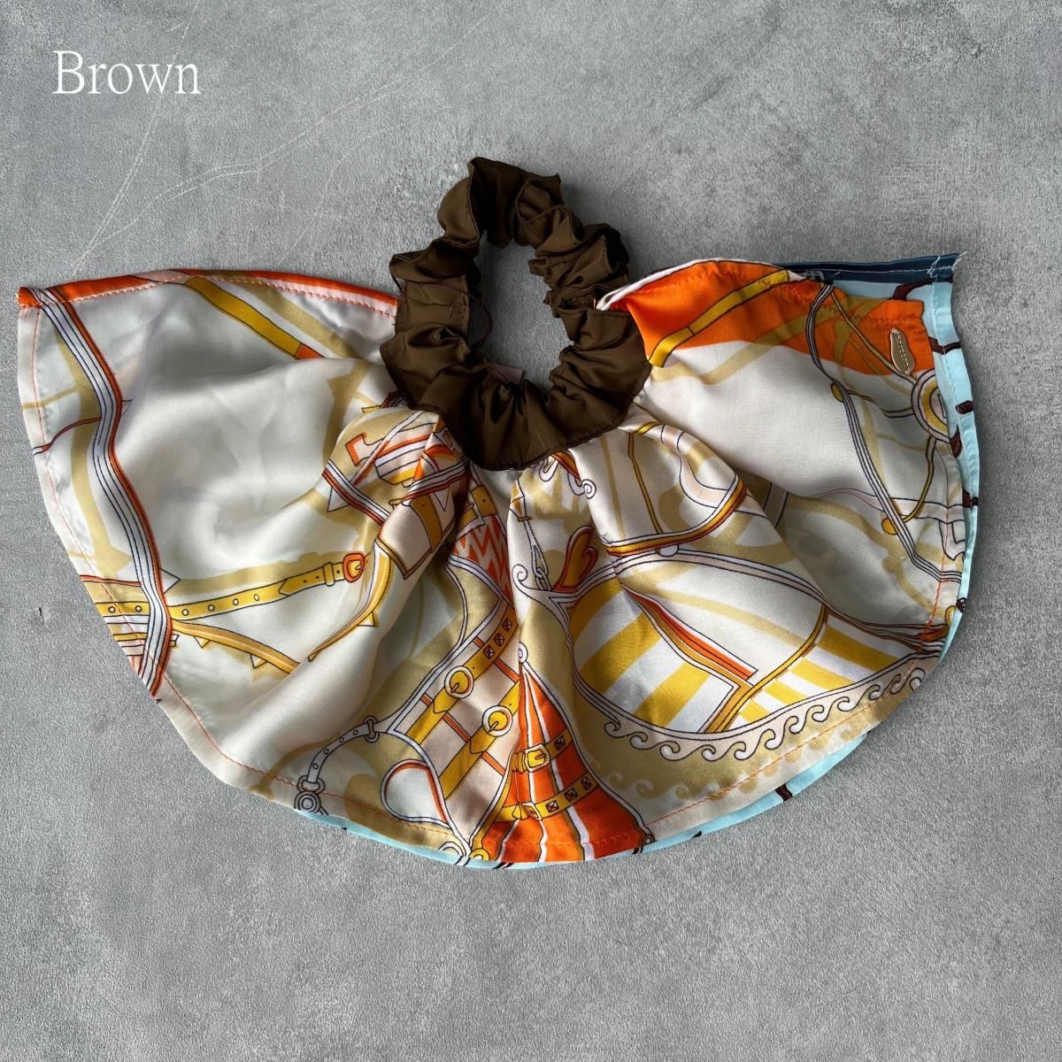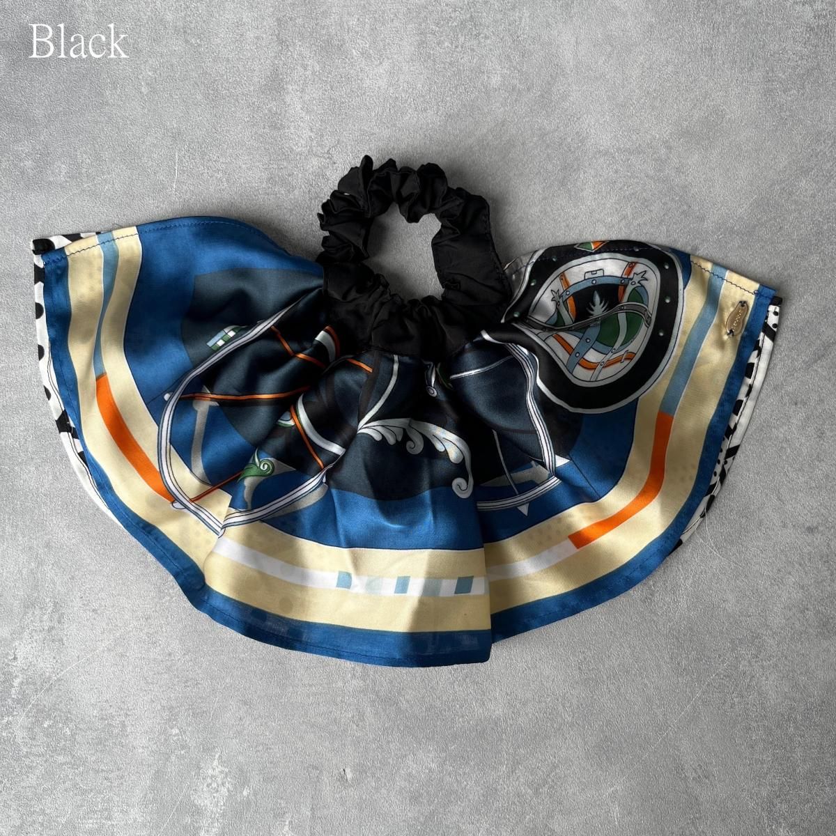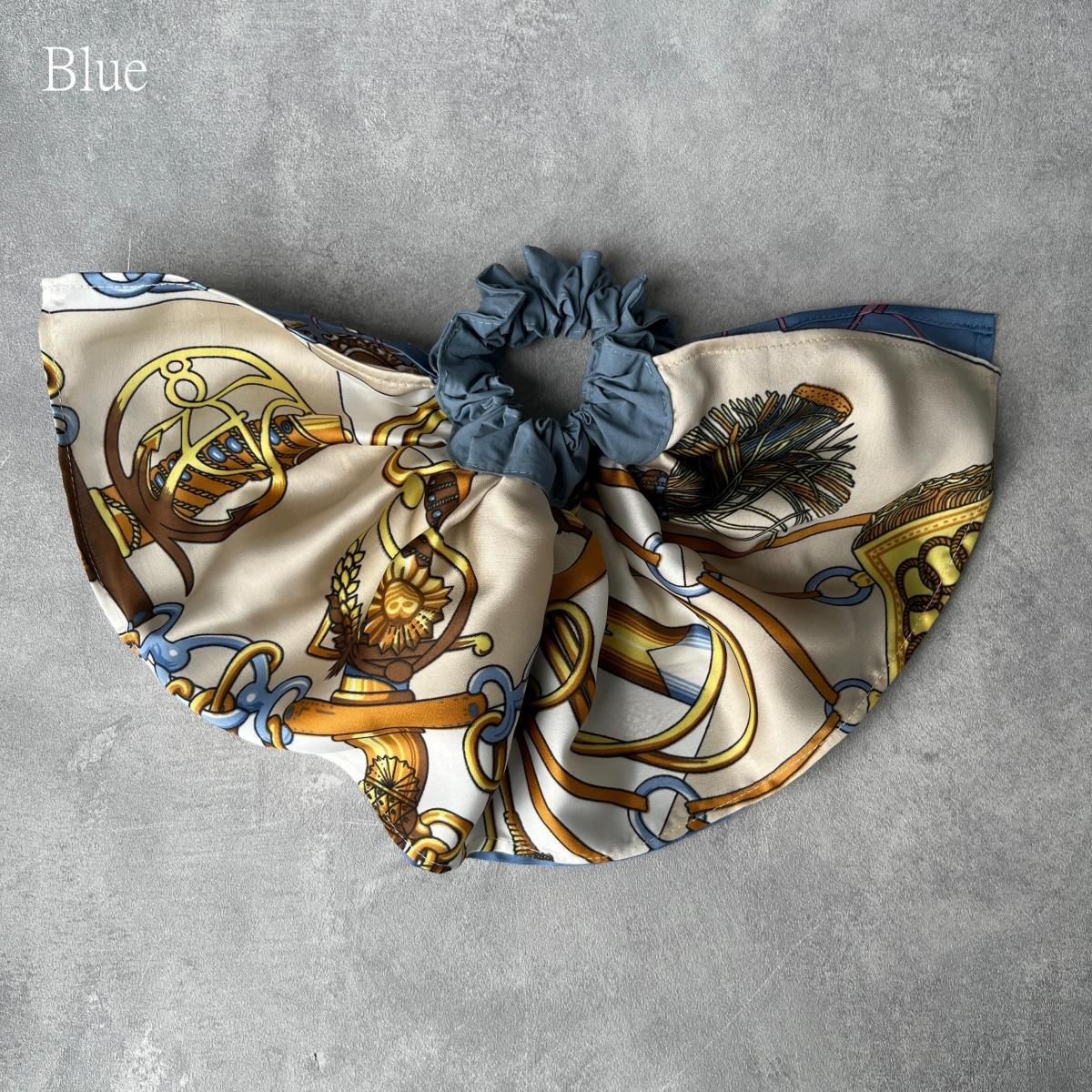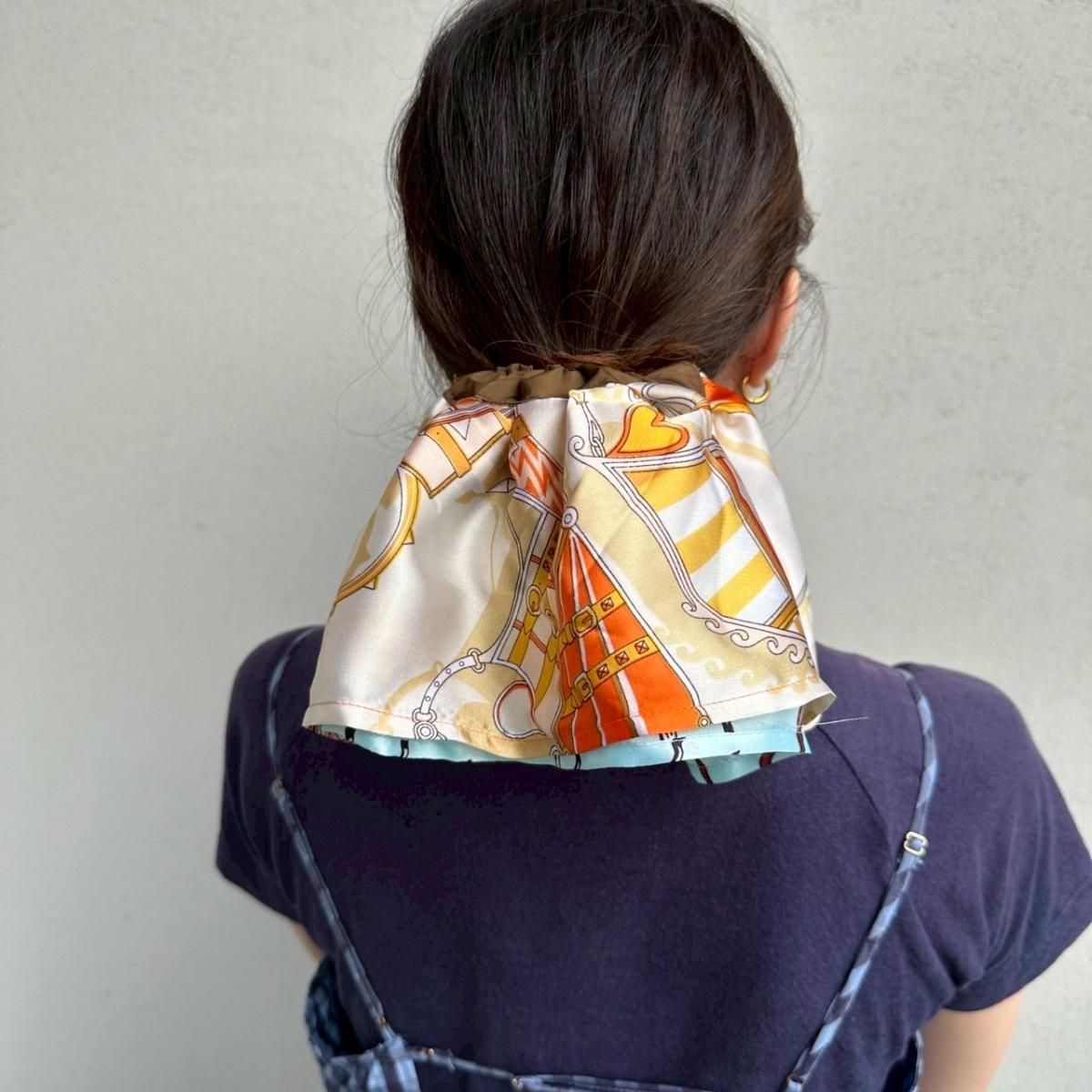 スカーフ2種類を組み合わせたボリューミーなシュシュ。