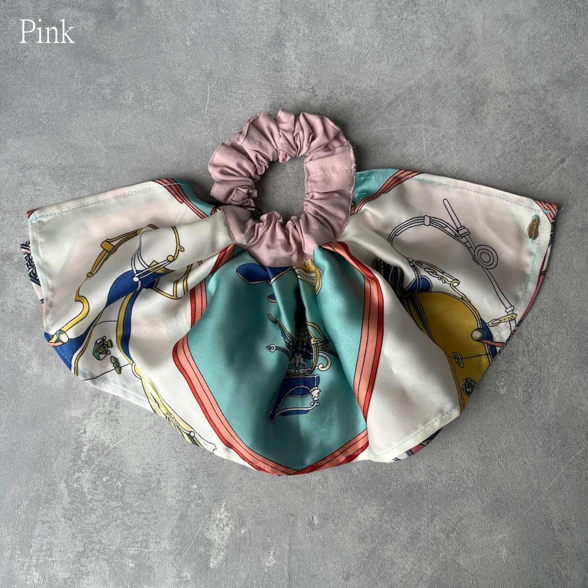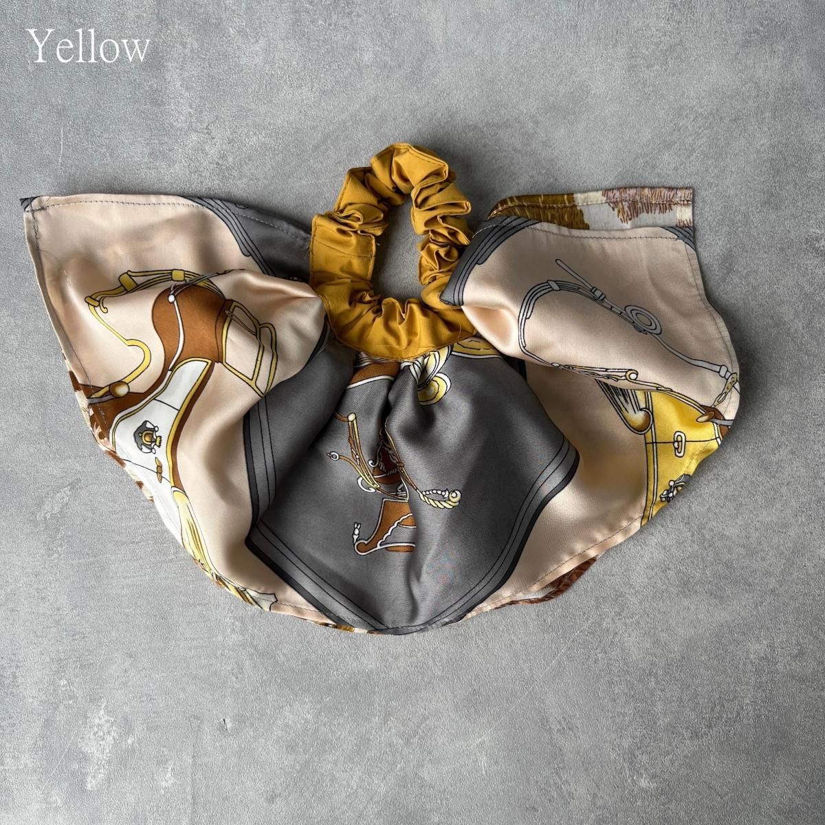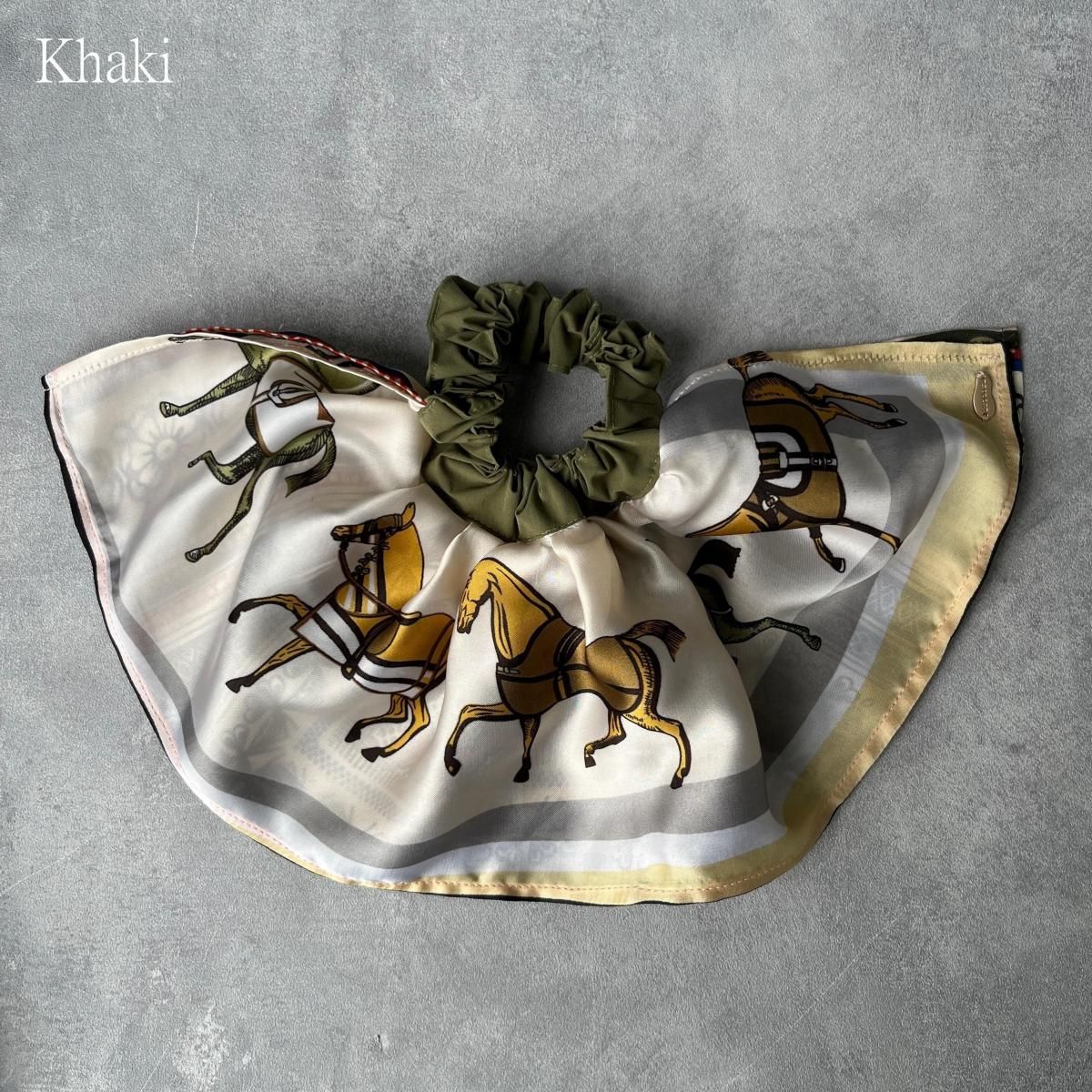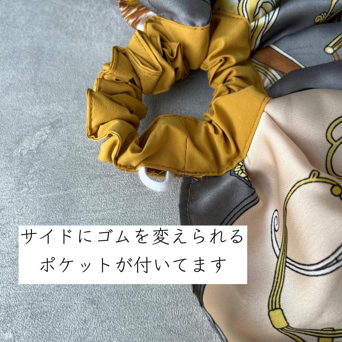 スカーフ2種類を組み合わせたボリューミーなシュシュ。
