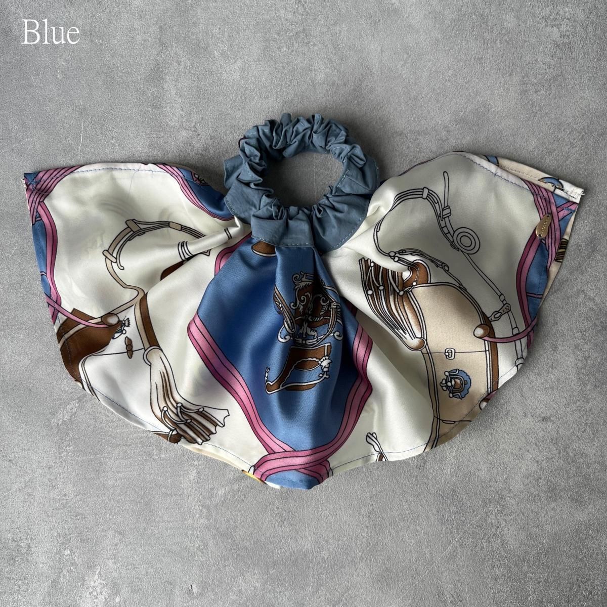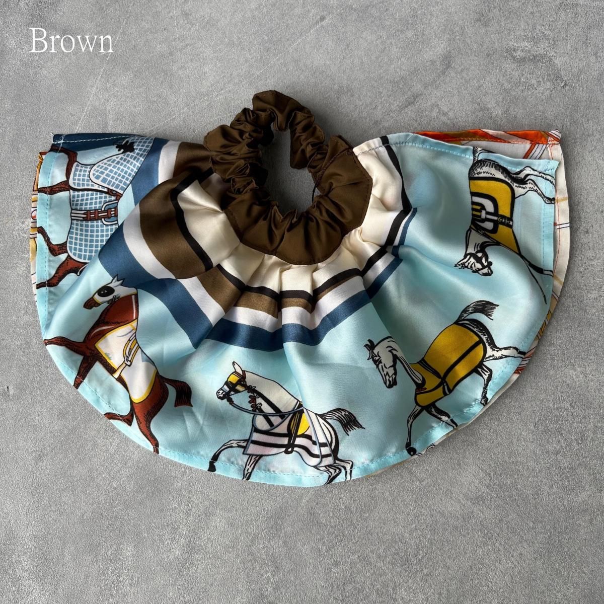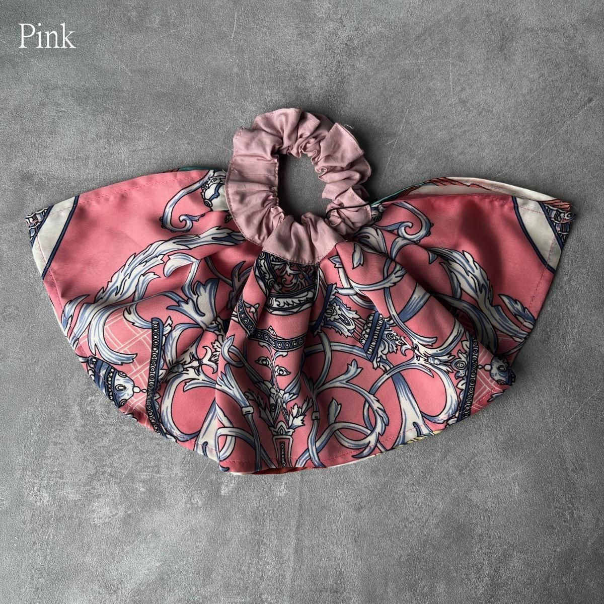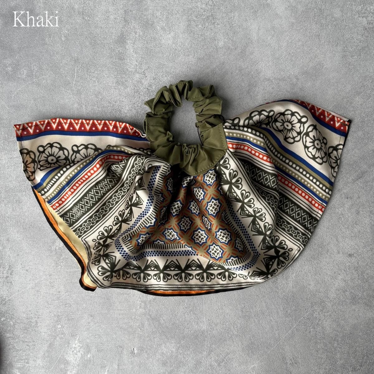 スカーフ2種類を組み合わせたボリューミーなシュシュ。
