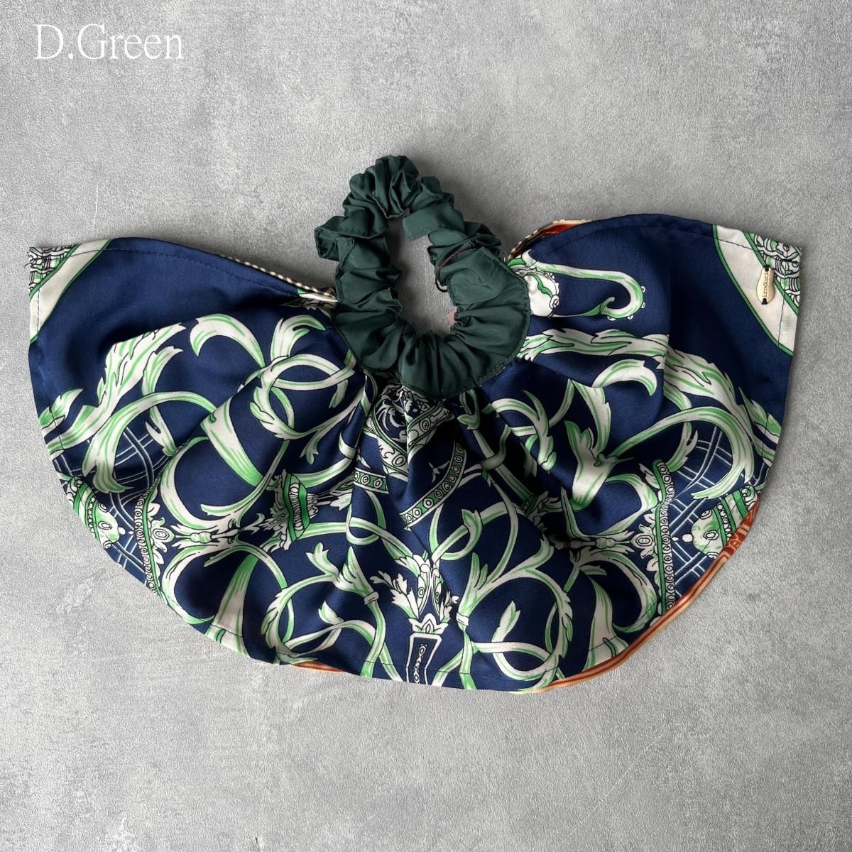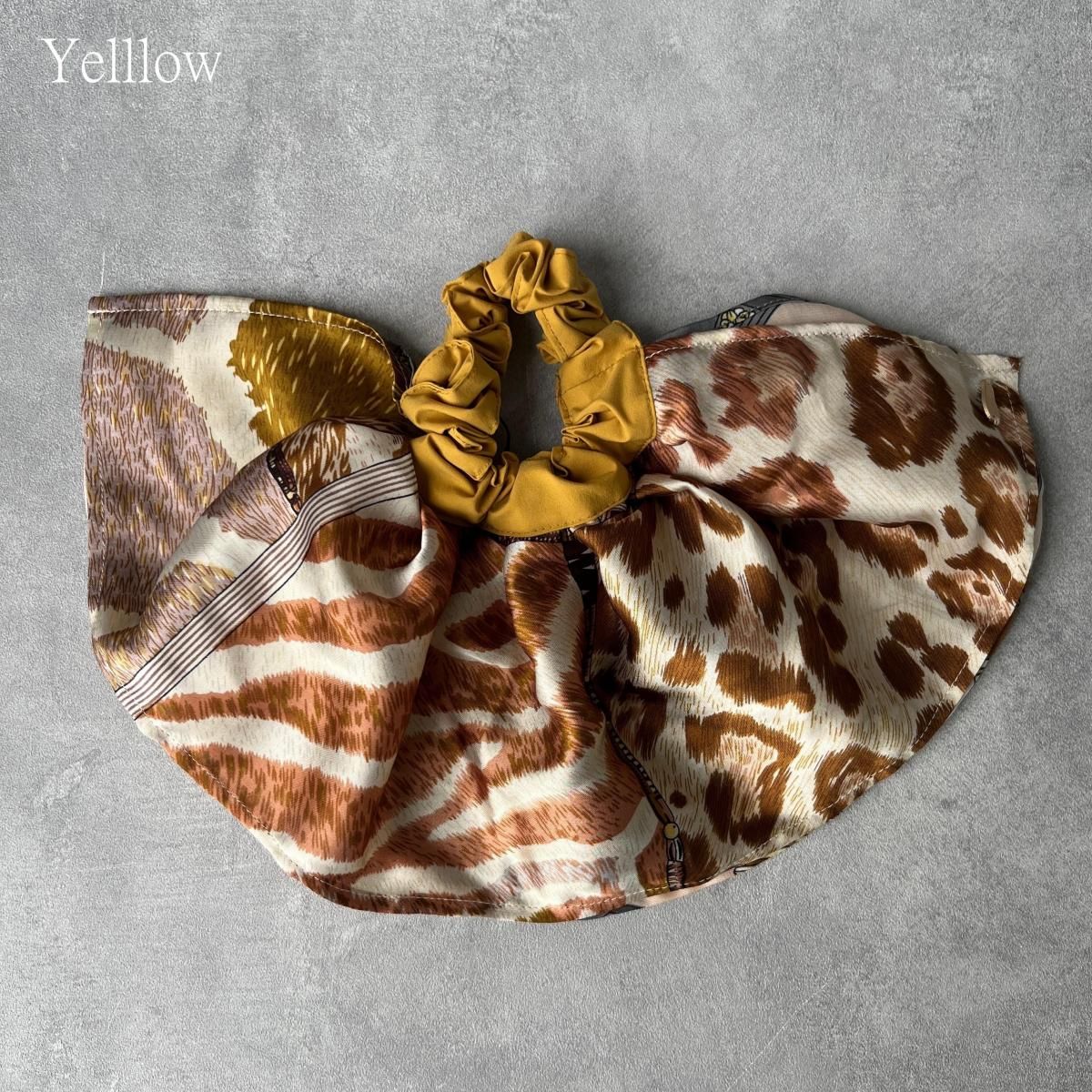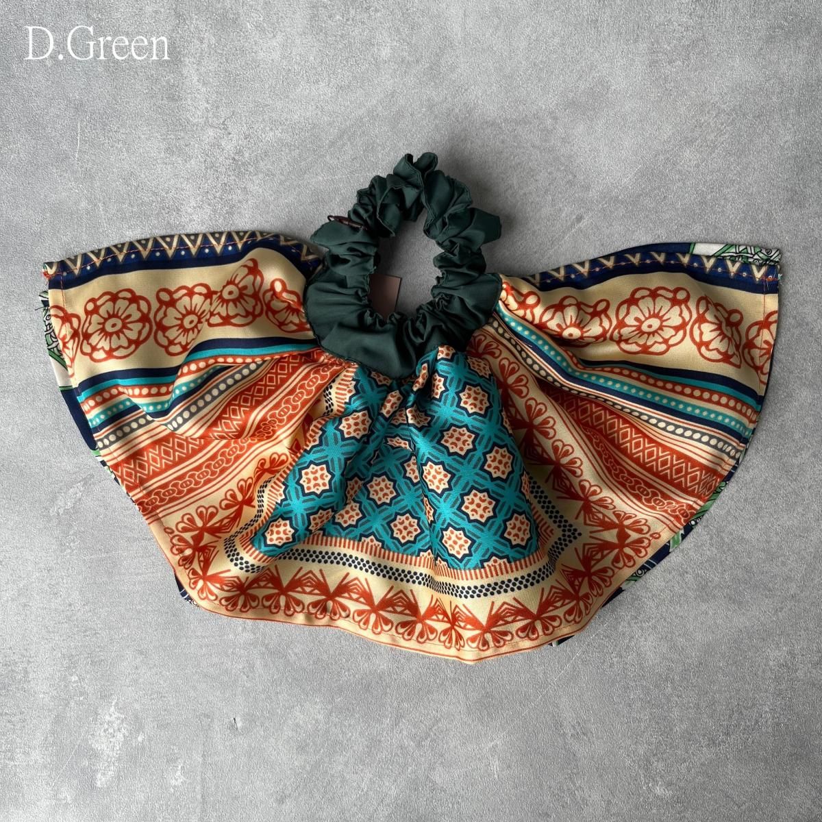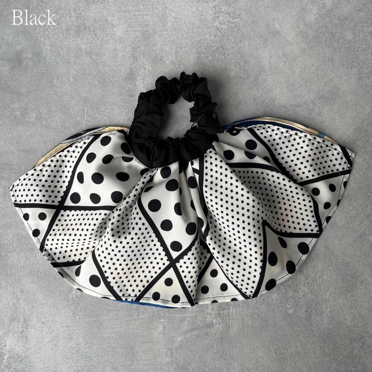 スカーフ2種類を組み合わせたボリューミーなシュシュ。